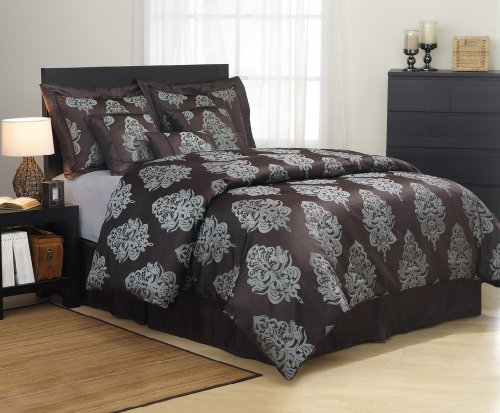 7 Pieces Brown with Silver Jacquard Floral Comforter 88" x 90" Bed-in-a-bag Set Queen Size Bedding Review